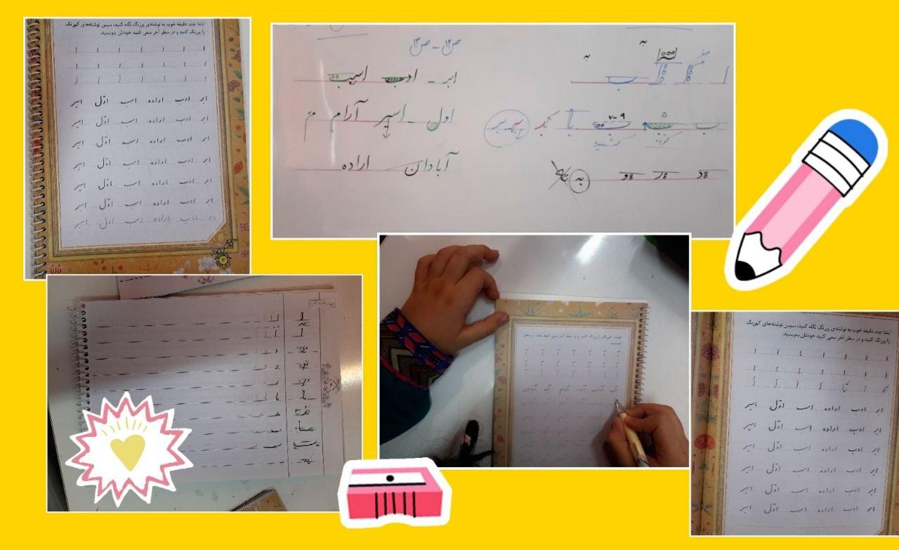 آموزش درس اول از کتاب آموزش خط تحریری و کتاب خط تحریری سرمشق