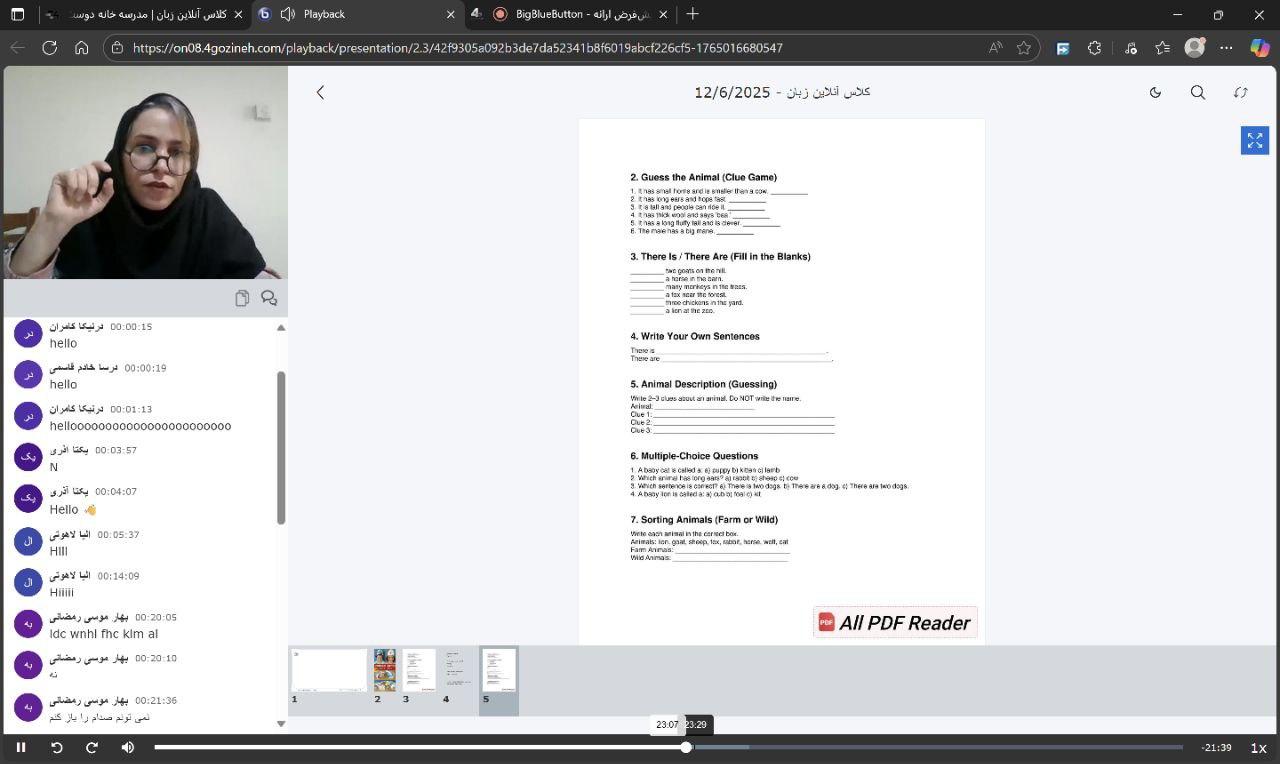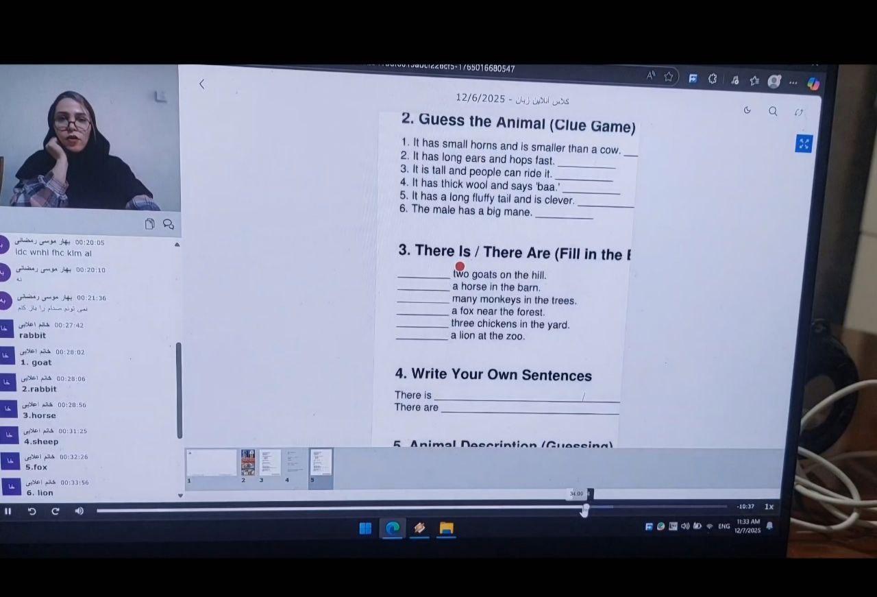 Grades4_5 / Doing a worksheet titled Animals / Online class