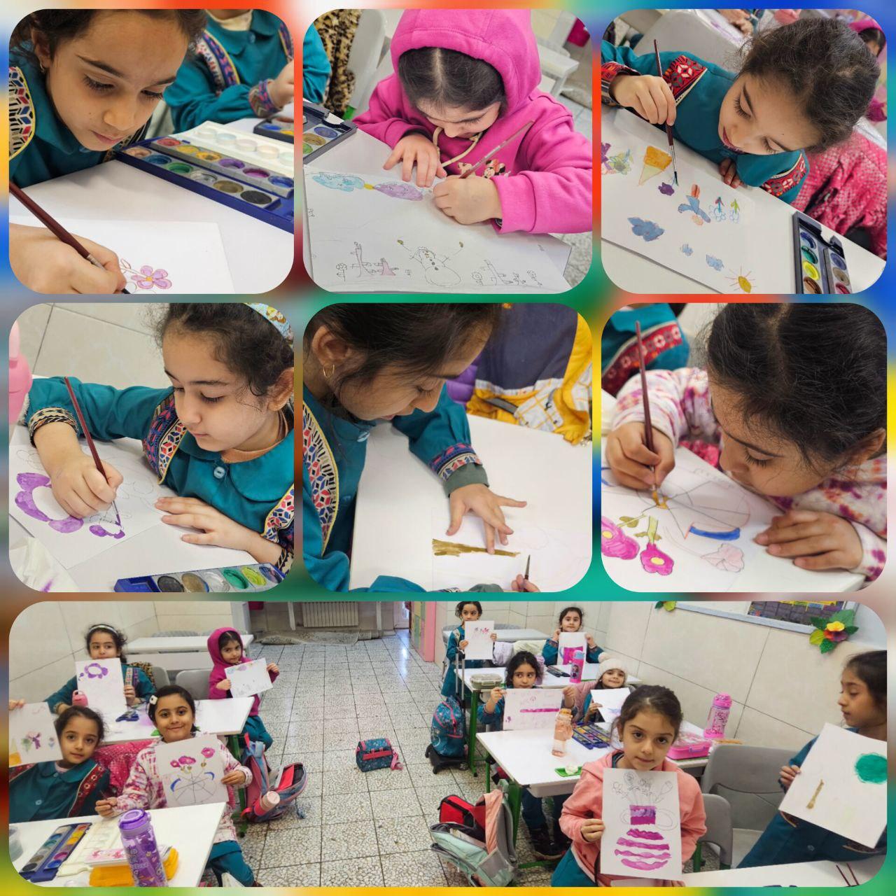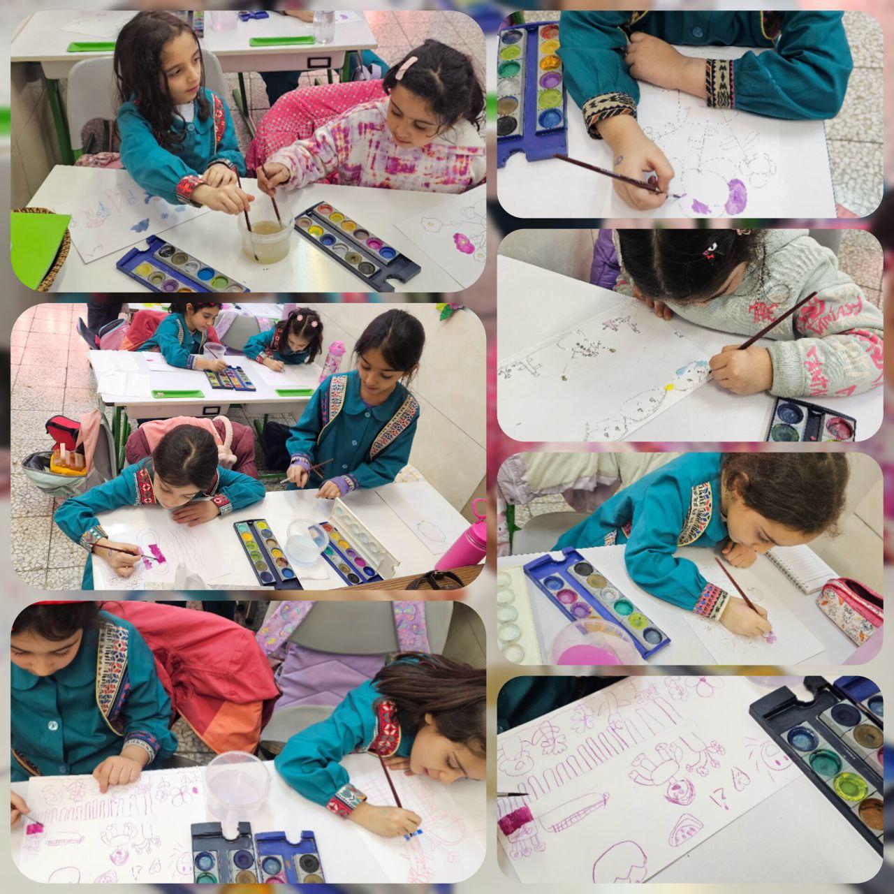 دختران منظم و هنردوست پایهی اول با صبوری در حال انجام ادامهی کار آبرنگ میباشند