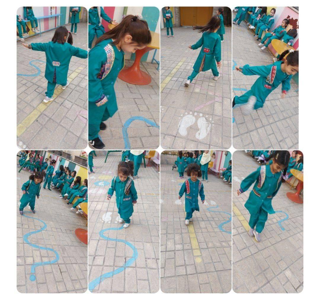 راه رفتن، پریدن و لیلی روی خطوط مختلف با هدف آشنایی دیداری با خطوط