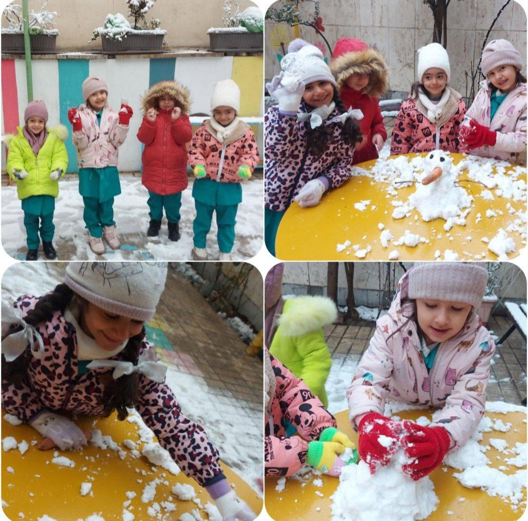ساخت آدم برفی و تجربه بازی گروهی در برف