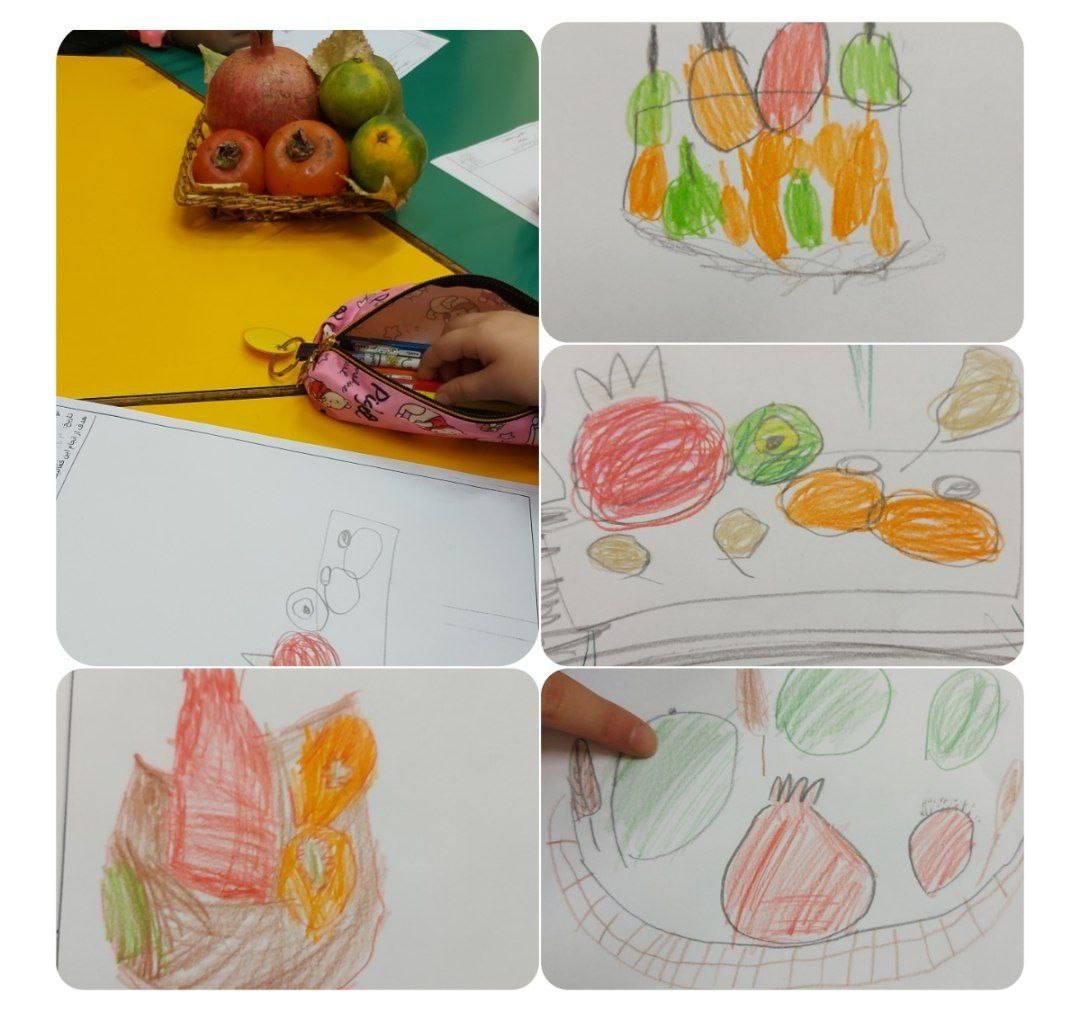 کشیدن نقاشی میوه‌های پاییزی از روی مدل زنده
