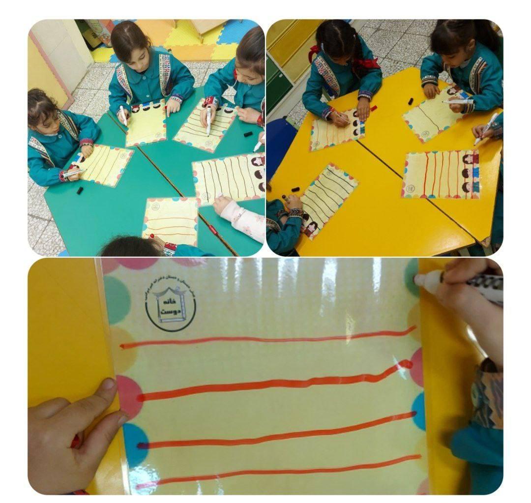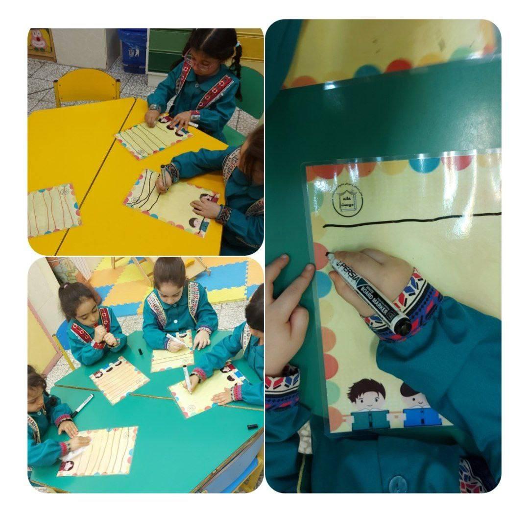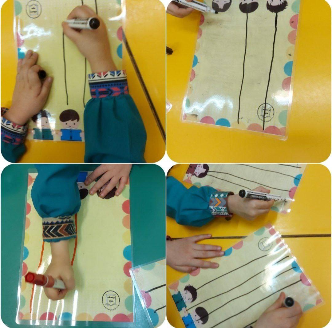 تمرین کشیدن خط راست و حفظ تعادل با ماژیک