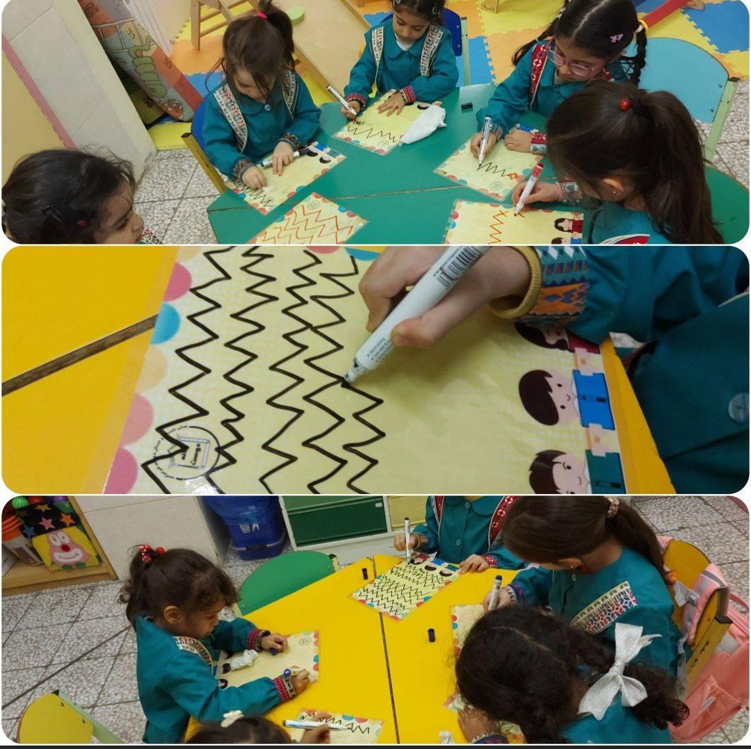 تمرین کشیدن خط شکسته با استفاده ازماژیک و تخته