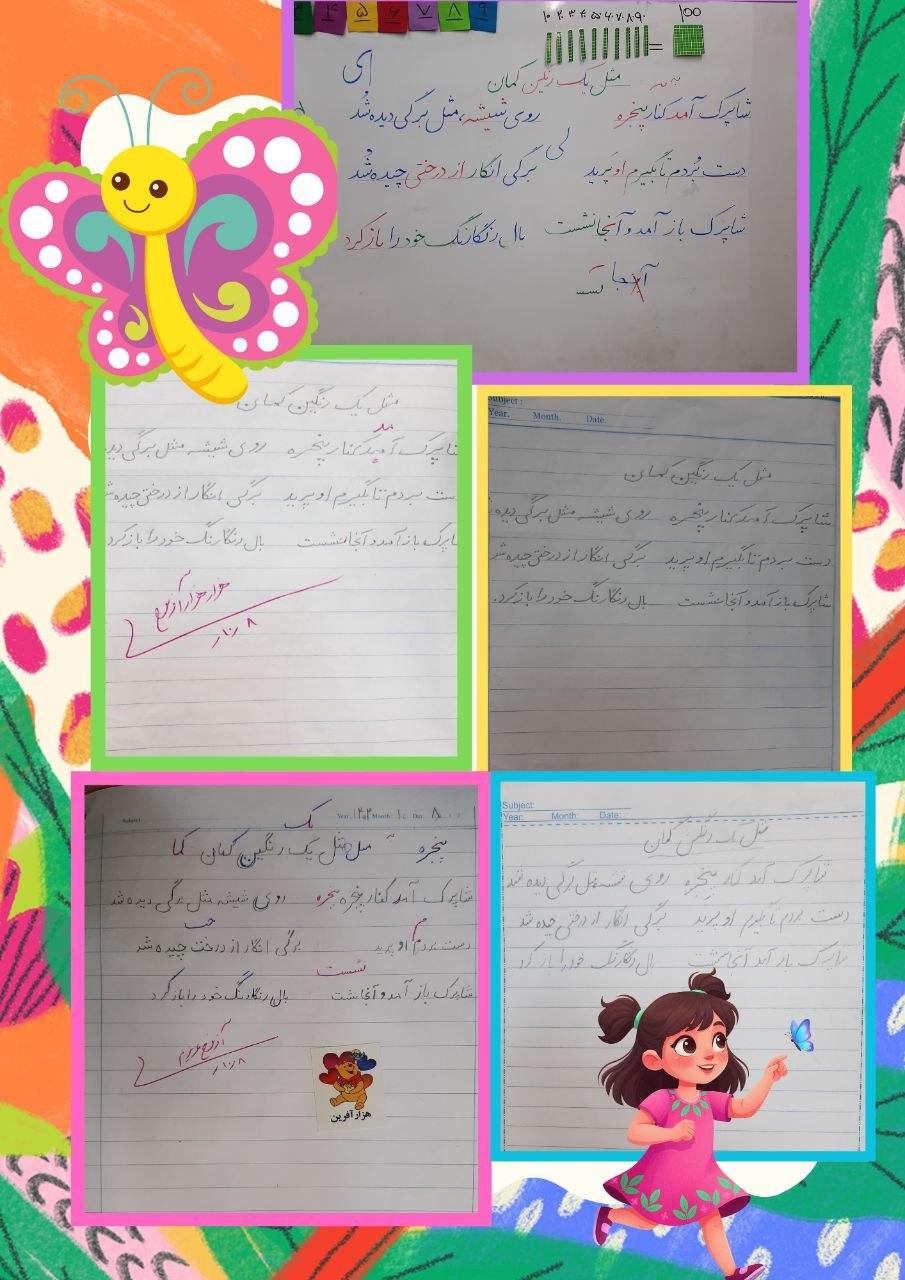آموزش زیبا نویسی سه بیت اول شعر مثل یک رنگین کمان از کتاب فارسی