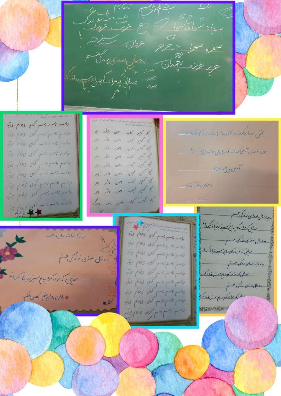 تدریس درس سوم از کتاب خط تحریری ششم دبستان و قاصدک دوم از جزوه آموزشی