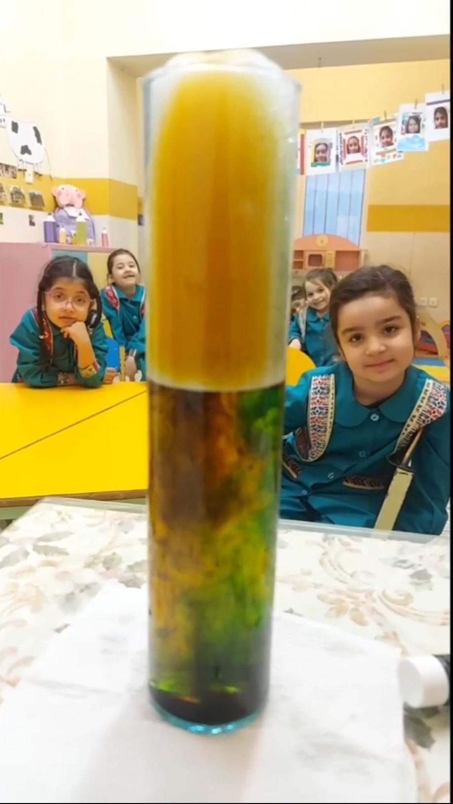 آزمایش طوفان رنگها با استفاده از آب گازدار، مایع صابون و رنگهای خوراکی